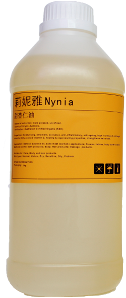 甜杏仁油*1kg容量型号价格1kgNC042F(17) 功效:极品杏仁冷压而成,富含矿物质、蛋白质、脂肪酸、维生素A、B1、B2、B6、D及少量E;滋养疲惫皮肤,综合皮肤酸碱度,补充细胞活力度,修复指甲;止痒消炎抗红肿过敏、适用于敏感肌肤及婴儿皮疹,最适合全身推油,极易吸收。